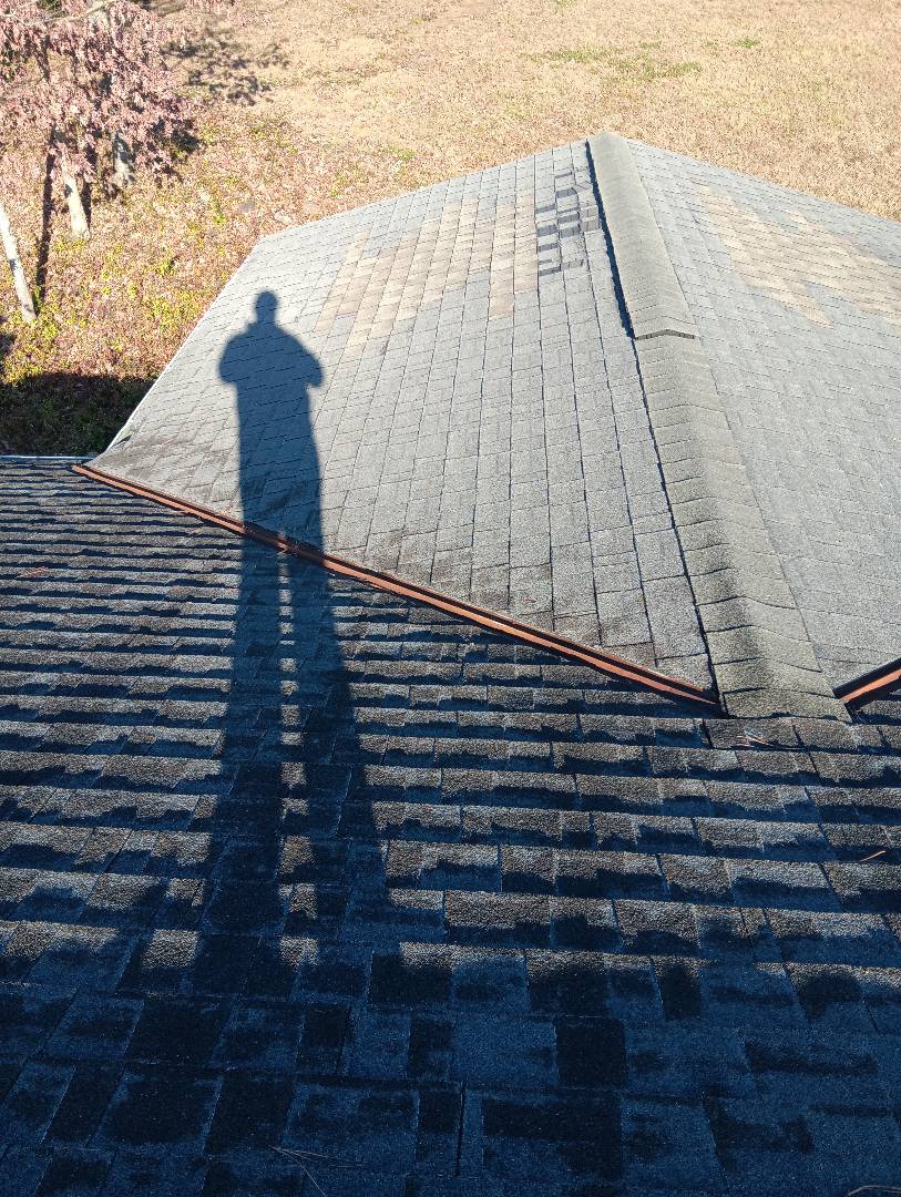Replaced missing ridge vent shingles and repaired flashing.